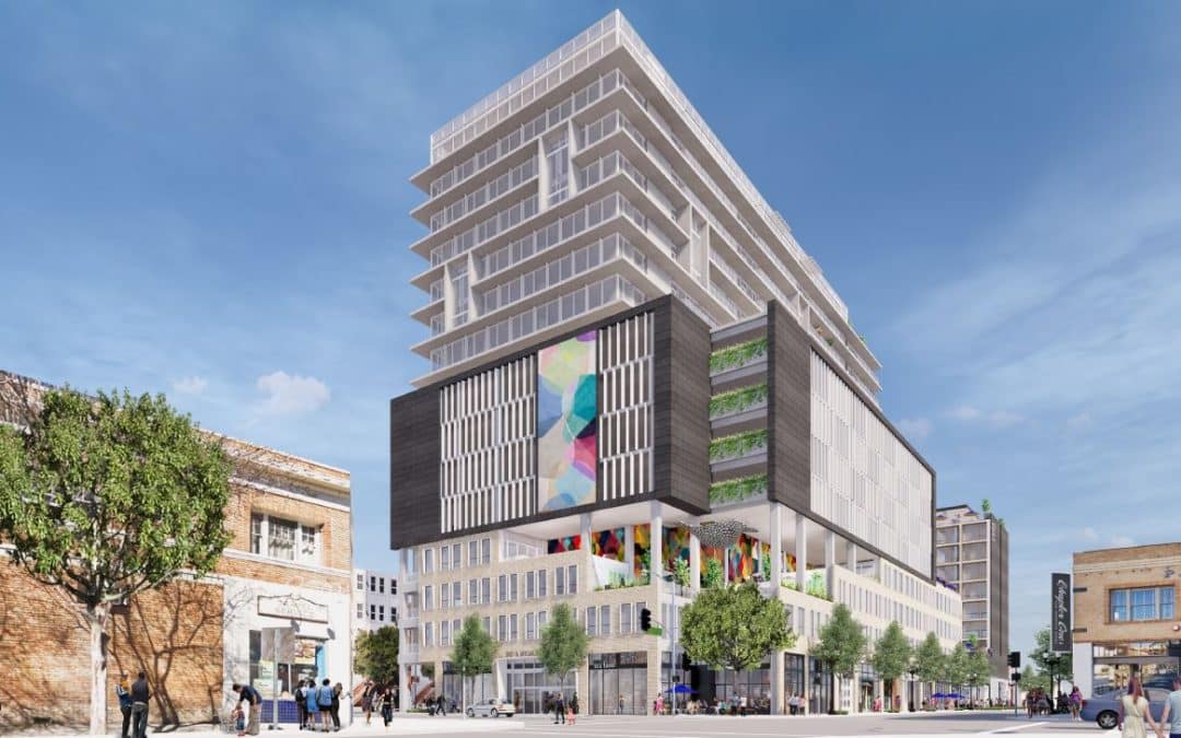 According to the company, the development will feature more than 13,500 square feet of retail and residential space. Central to the development is a 16-story residential building with 171 apartments, a 10-story hotel with 75 rooms and a rooftop conference facility, and a parking structure with 204 public parking spaces. The project is designed by the global architecture firm Gensler and construction is expected to begin in the second quarter of 2024.
