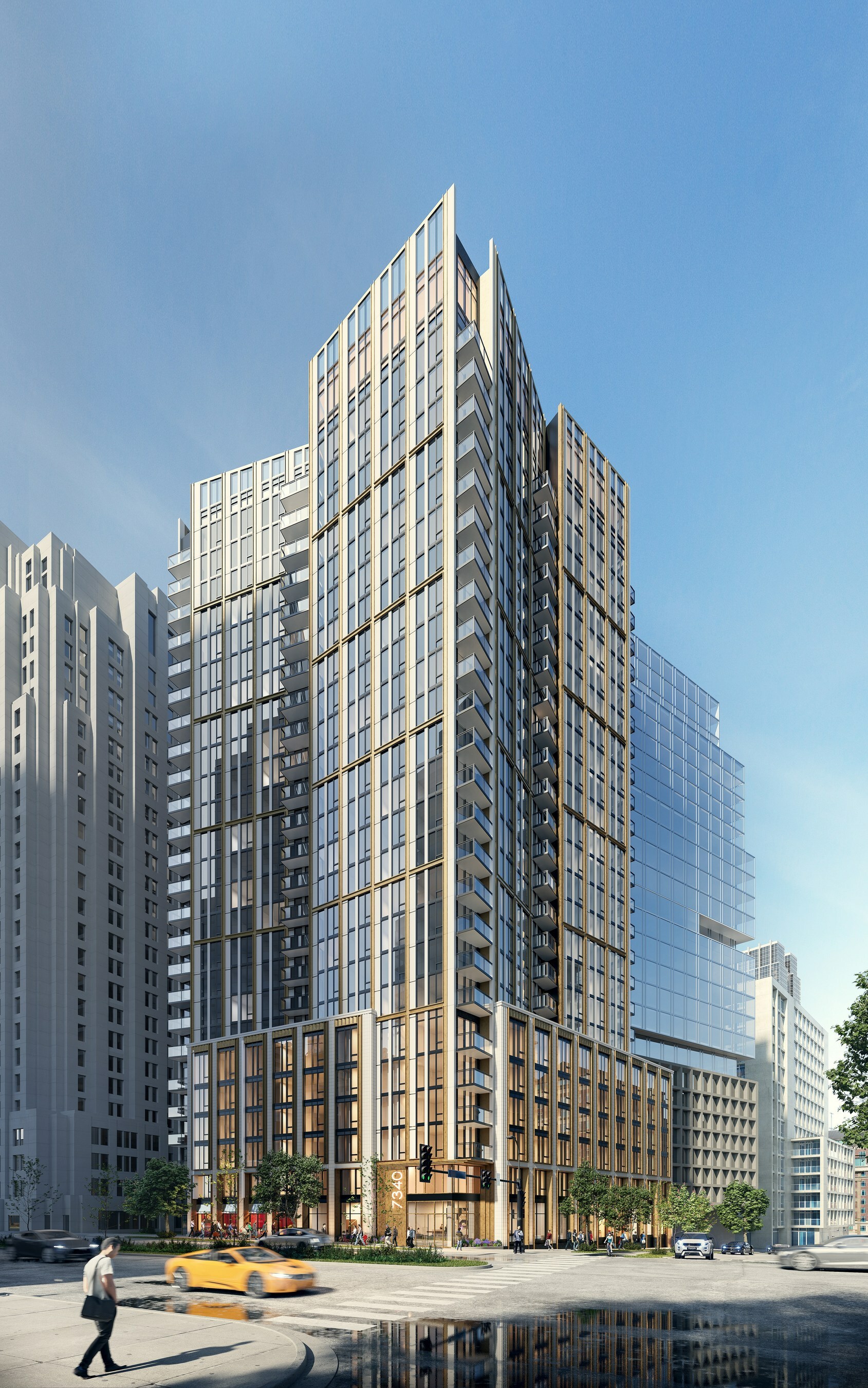 Tenant amenities will include a speakeasy, rooftop pool, screening room, work from home multi-use spaces, fitness center, and 24-hour concierge. The apartment building will also have retail located on the first floor of the building. The first units are projected to deliver in the fourth quarter of 2025, with final completion in early 2026.