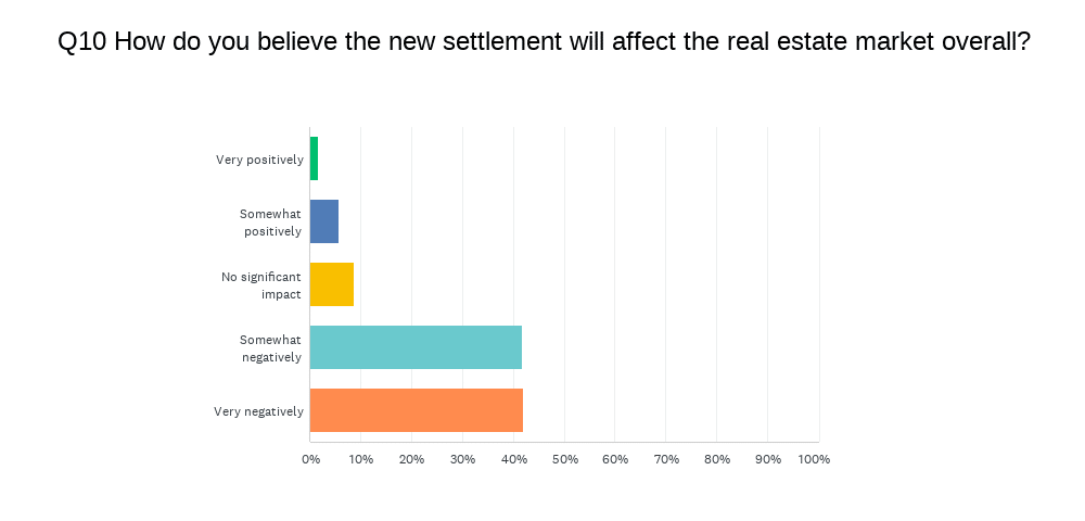 Most expected the bulk of the impact to center on commission structures (53%), with only 12% expecting to see changes in listing practices. In early April, Zillow banned private listings from its platform, with Chief Industry Development Officer Errol Samuelson saying: