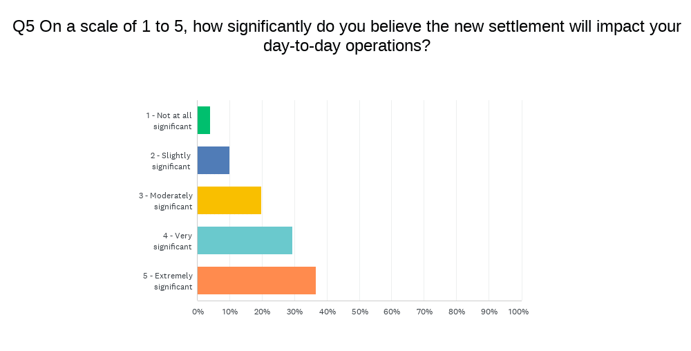 We asked how significantly respondents thought the settlement would impact their day-to-day operations. More than half thought the impacts would be very or extremely significant (66%).