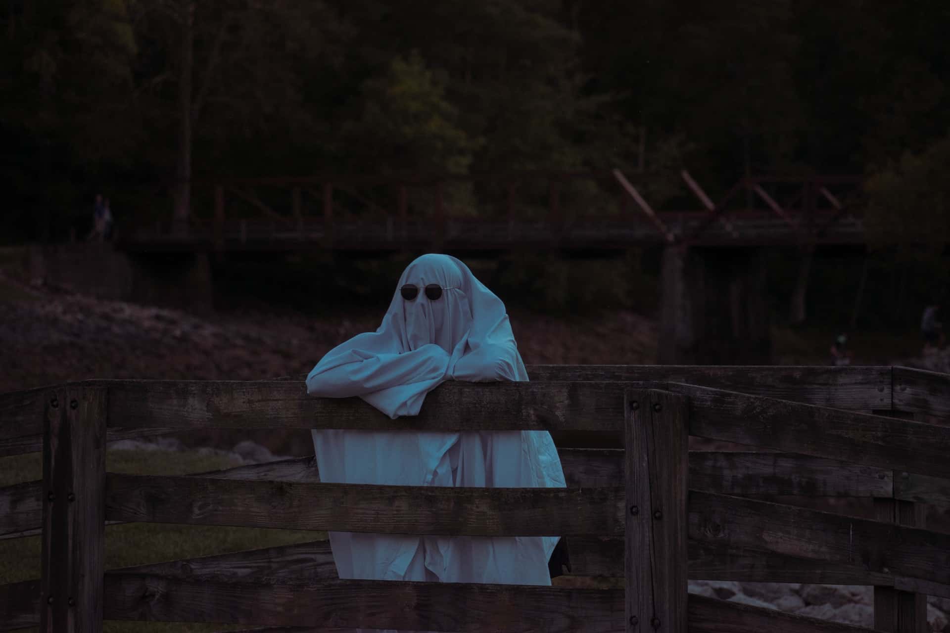 Pictures show someone dressed as Ghostface from “Scream” casually lounging in the living room, and even hiding in the shower.