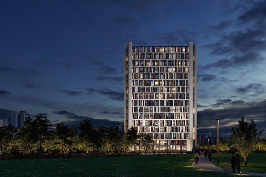 The company added the e-lofts are “ideal for young professionals, creatives, and urban families seeking a dynamic live/work lifestyle.” The property will also incorporate sustainability features into its design, including copper-toned exterior façades with integrated solar panels.