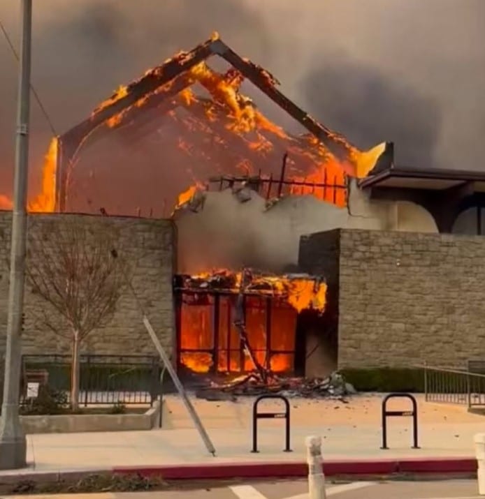 Photo: A Palisades area church on fire, courtesy of Jamie Lee Curtis’ Instagram page